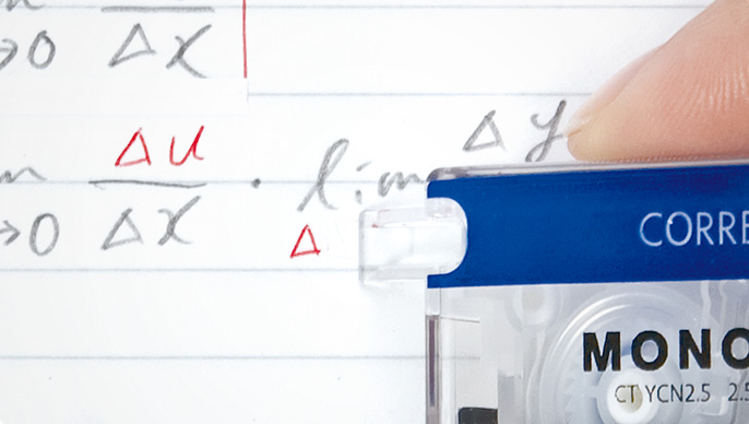 修正帶的前端為透明的設計可以很容易地看到修正部分,